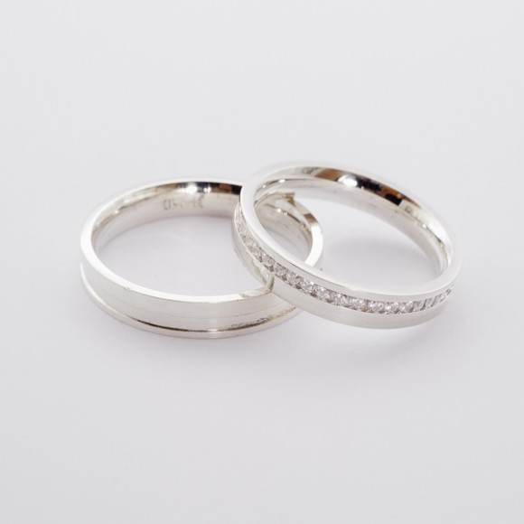 ALIANÇA PRATA QUADRADA CRAVEJADA 4M.M